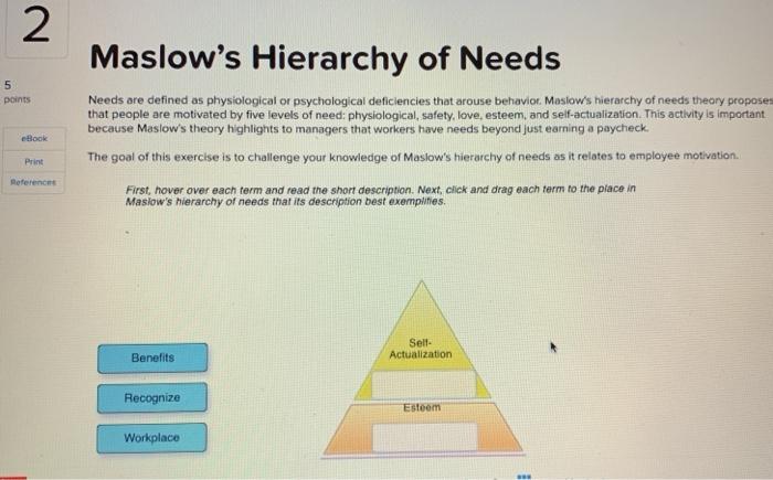 Solved 2 5 Points Maslow S Hierarchy Of Needs Needs Are Chegg Com